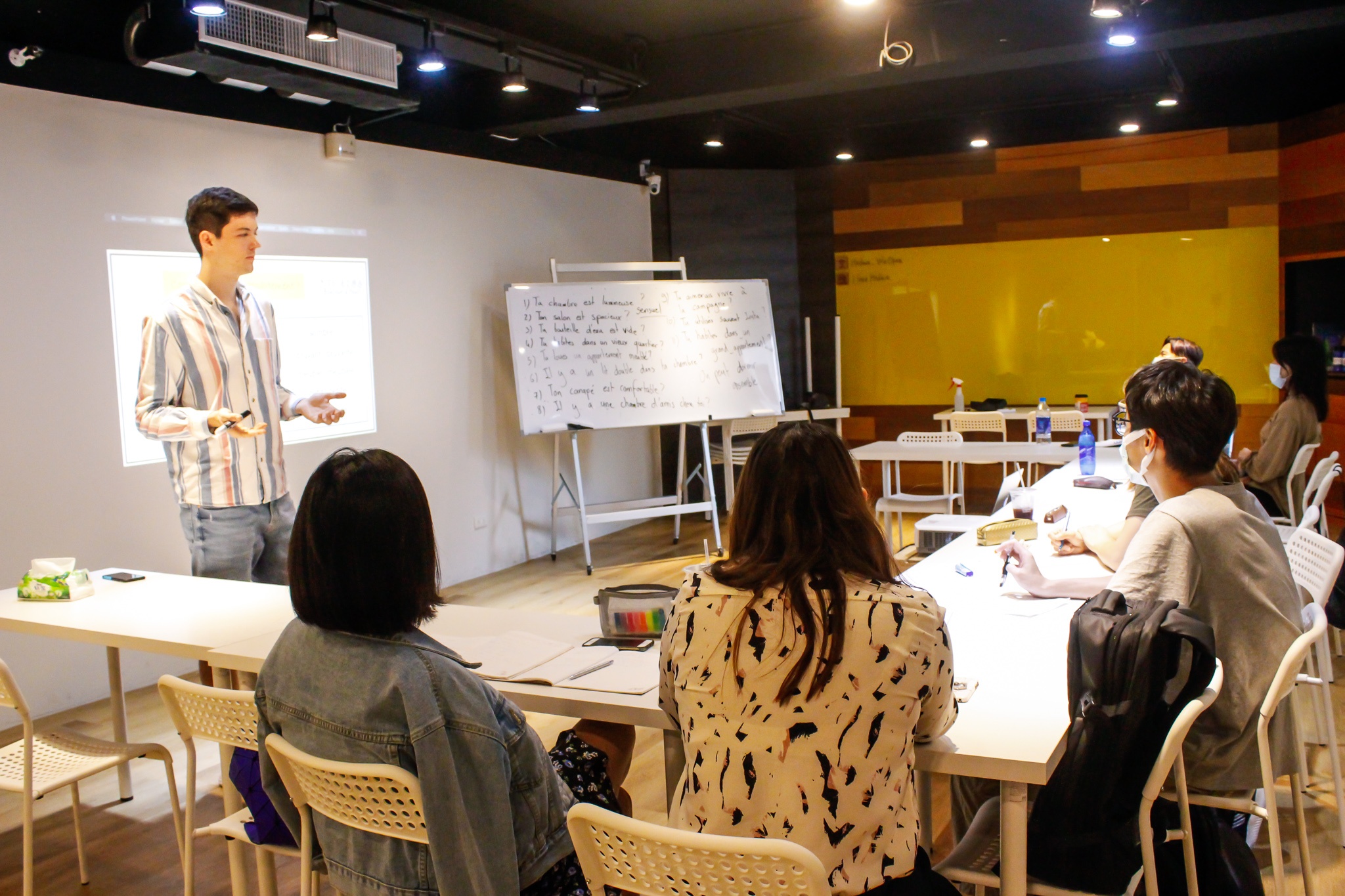 在未來的正式口說法語課程中,你將完全沈浸在輕鬆的法語口說環境中,透過完全自製的精心課程投影片以及黑板講解的方式帶領對話練習,高度接地氣的內容不僅貼近生活,小班制的精品環境更能營造學習氣氛,讓你快樂開口說! 我們認為 #人人都有大聲輕鬆說法語的基本權利
